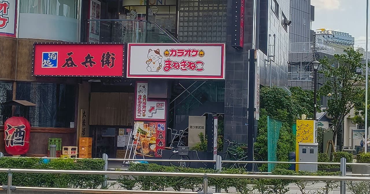 浅草の今戸神社に向かう途中…カラオケ「まねきねこ」を発見。今回の巡礼では、なぜか私、招き猫に敏感になっています…